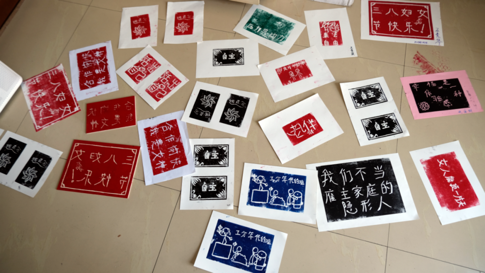 2024年妇女节,家政女工们一起做的版画。(图/受访者提供)