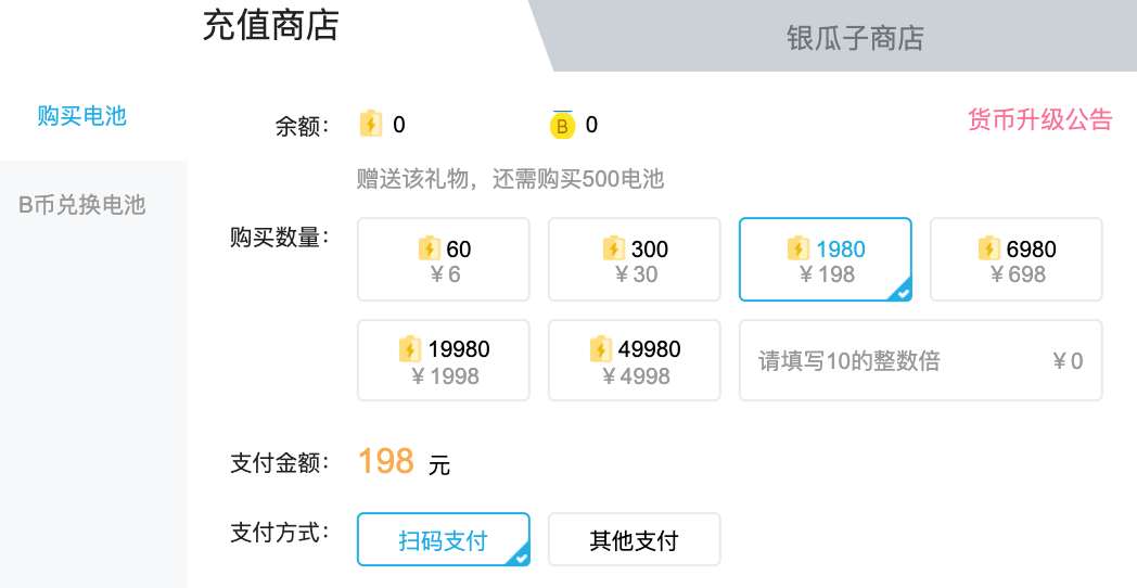 在B站,虚拟偶像的主播积分是累积的,主播每收到1电池或100金瓜子礼物就会提升1点积分。上文已有提及,1000金瓜子=1元人民币。而60电池=6元人民币。