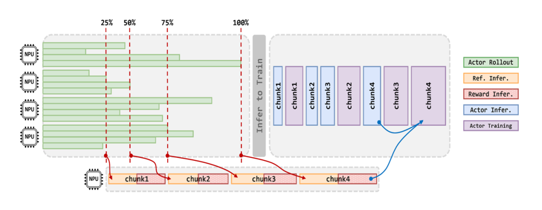 大规模扩展受限:强化学习过程中,训练与推理阶段的参数重新映射机制,以及各计算任务间复杂的数据通信流程,成为制约后训练大规模部署的主要瓶颈。
