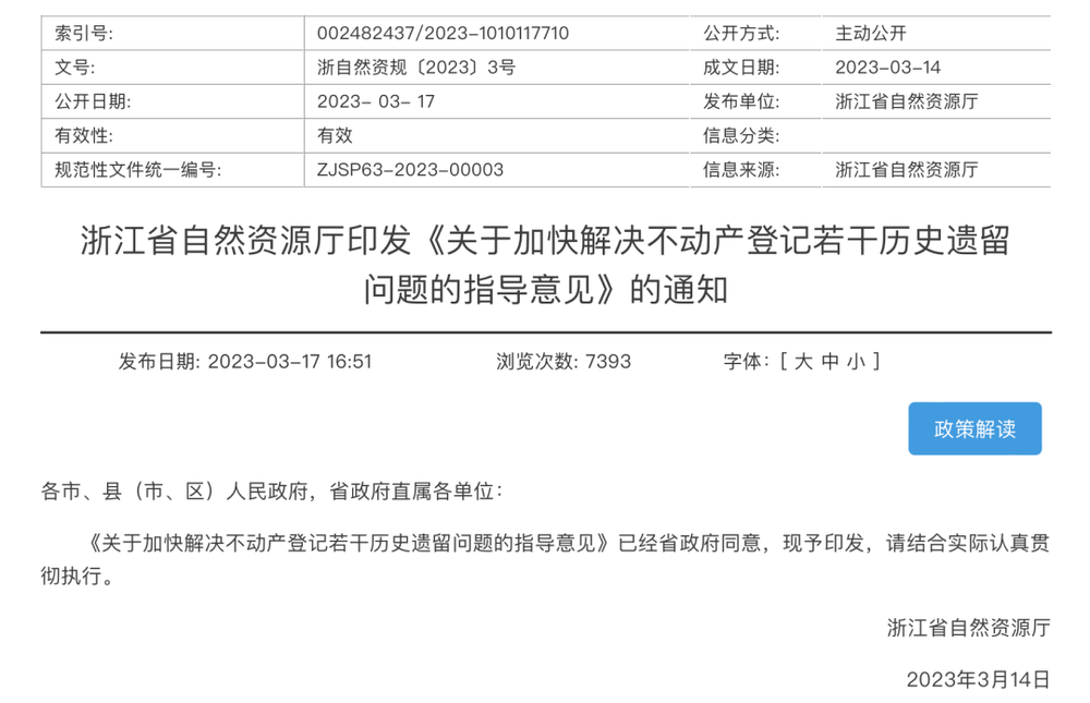 前述浙江省自然资源厅自然资源确权登记局负责人向每经记者表示,在推进化解登记前端环节历史遗留问题方面,经浙江省政府同意,浙江省自然资源厅印发了《关于加快解决不动产登记若干历史遗留问题的指导意见》,针对用地手续不全、欠缴土地价款等主要历史遗留问题,明确了16条处置意见。建成不动产登记前端历史遗留问题处置监管系统,建立房地历史遗留问题化解工作会商机制,解决涉及多部门职责的问题。