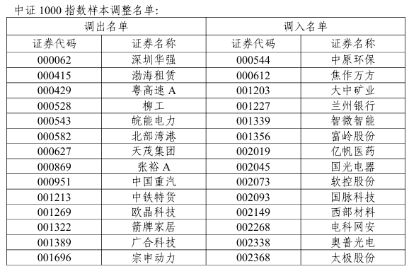 中证1000指数更换100只样本,万辰集团、思瑞浦等调入指数;深圳华强、渤海租赁等调出指数。