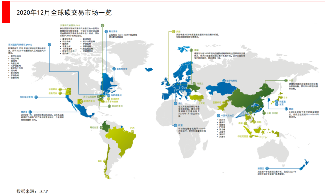 中国从2011年开始,已经启动了北京、上海、天津、重庆、湖北、广东、深圳、福建八地的碳排放权交易试点,在2020年提出了2060年实现碳中和的总体目标,并且要2021年正式启动全国性碳交易市场。