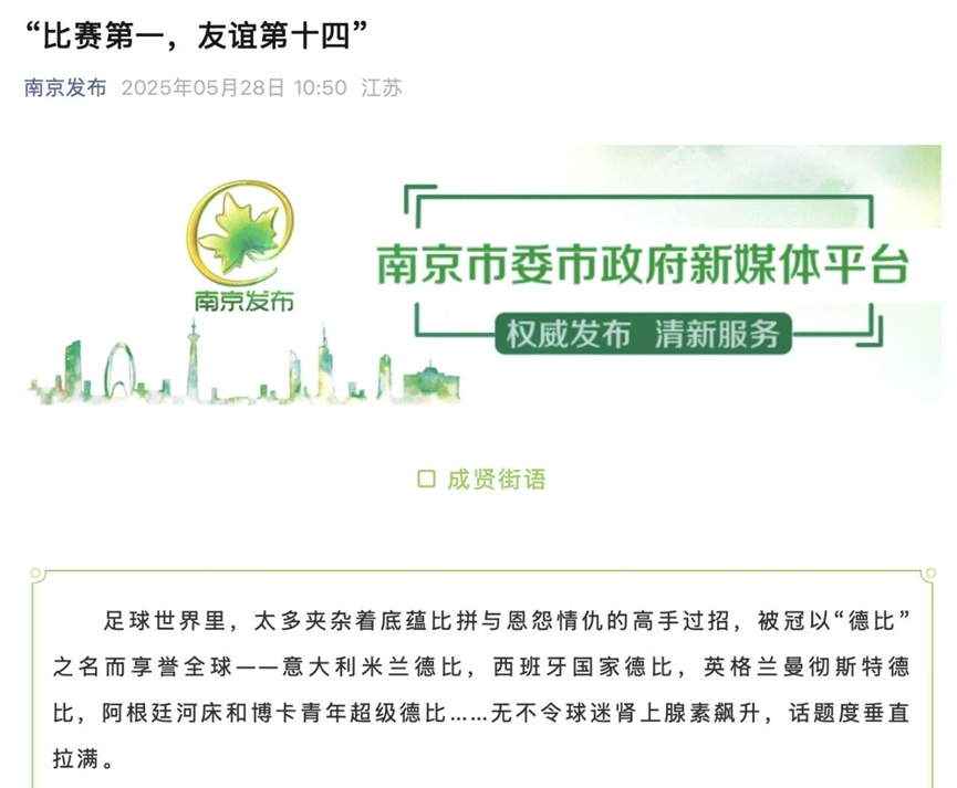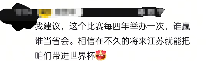 有人甚至建议,苏超联赛每年举办一次,谁赢了谁当省会,这样说不定能在不久的将来把中国带进世界杯。