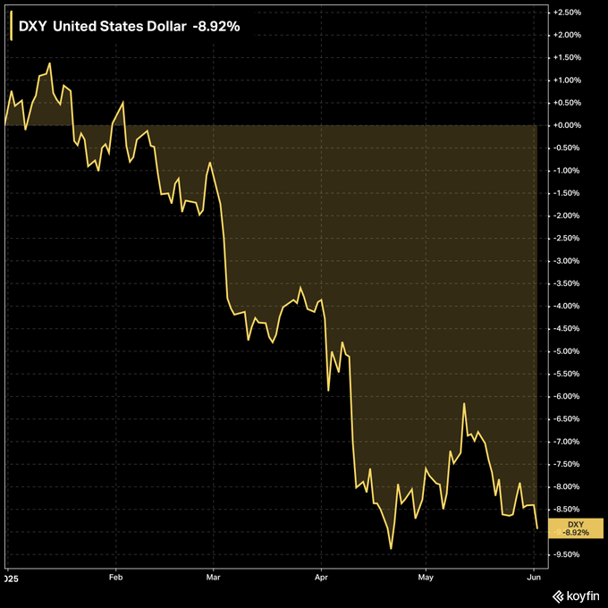 周一,在全球贸易紧张局势加剧的背景下,美元兑所有G10货币就再度全线下跌。目前,ICE美元指数在年内的累计跌幅已经达到了8.9%。根据道琼斯市场的统计,该指数已就此创下了史上最糟糕的开年头五个月表现。