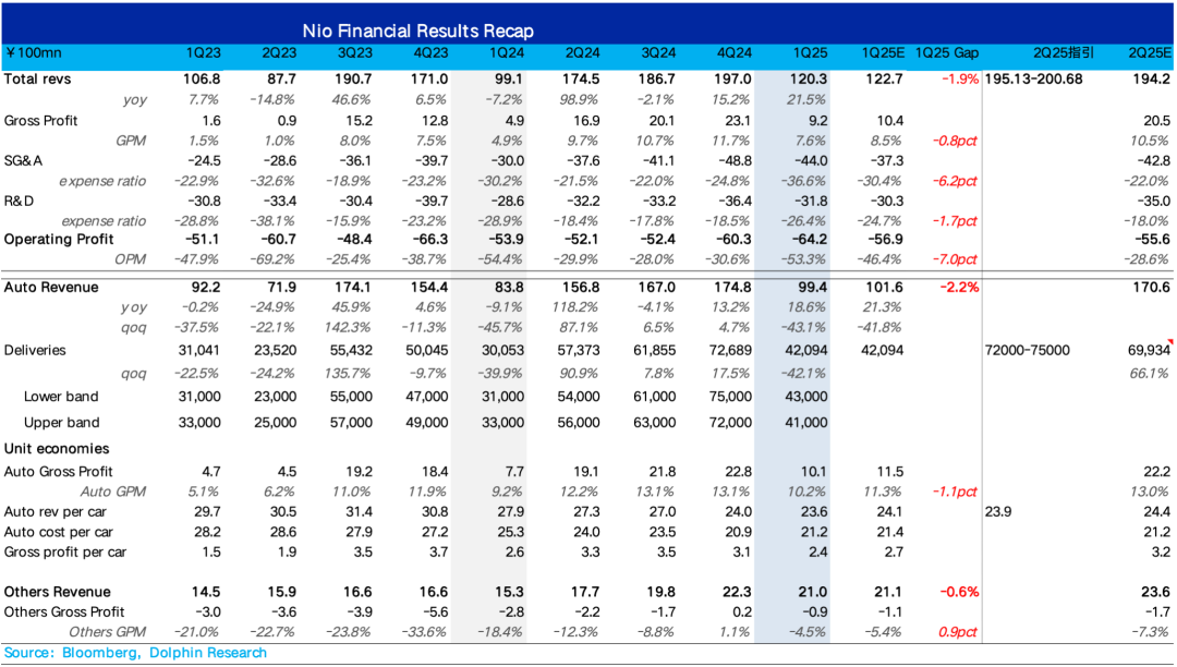 2. 卖车毛利率又环比回落到10%左右,和与市场之前沟通的一致:从卖车毛利率来说,蔚来之前其实也已经沟通过本季度卖车毛利率10%左右(4Q24业绩会之后),而环比回落的原因主要由于单价下滑,再加上销量本季度环比下滑42%,导致的单车摊折成本的上升。