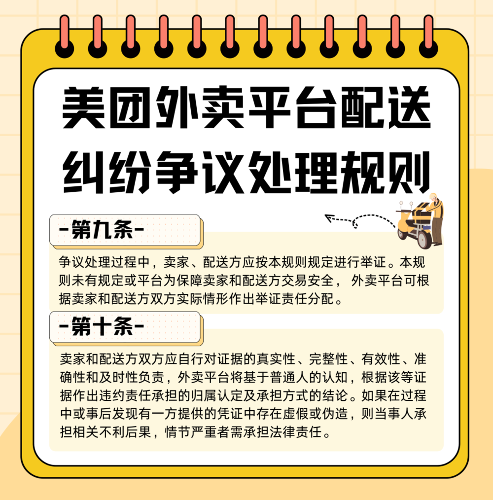 [1] 美团规则中心.《美团外卖平台配送纠纷争议处理规则》.https://rules-center.meituan.com/v1/mss_7482cc6672ce4e76a32d7d7c3161ac24/rules-center/0dd651ad-22e4-49ad-9c42-16d6f236855a-7043929/美团外卖平台交易纠纷争议处理规则-2023年4月版.pdf?openInApp=2
