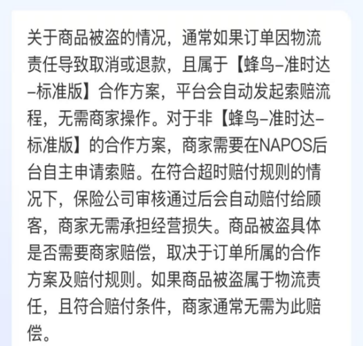 饿了么有关外卖投保的协议(图源:饿了么商家版智能AI)
