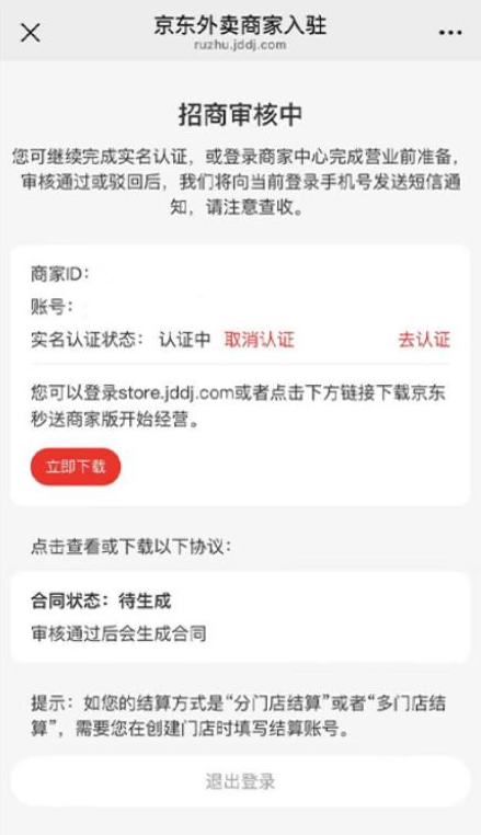 京东商家入驻界面(未签约无法提前查看合同)(图源:京东APP)