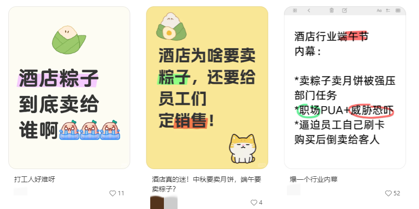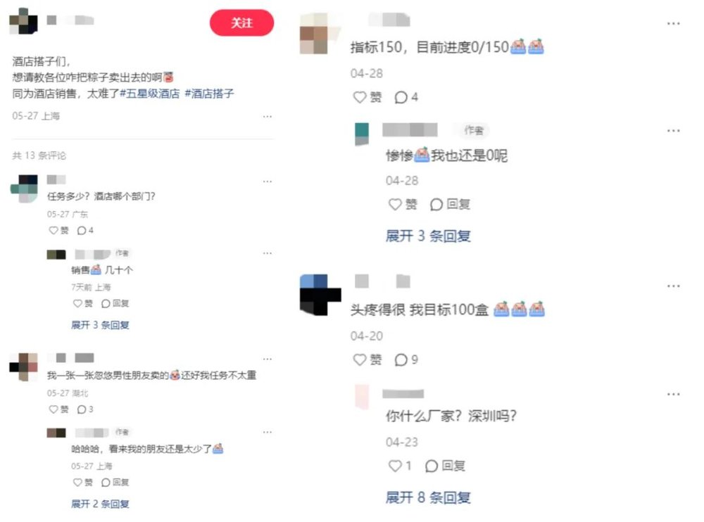 餐厅、行政、销售、前厅、公关,不管你是干嘛的,粽子任务是少不了的。动辄60盒、80盒、1万块、2万块交易额,有的还会被PUA“完不成任务就要自掏腰包”。