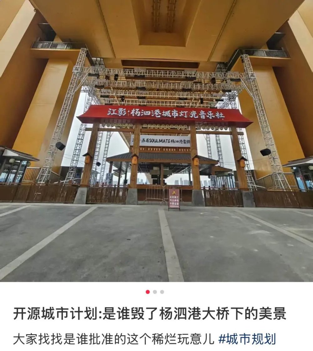 但确实很难想到,景点之丑、之同质化还能再创新高。最近,武汉杨泗港长江大桥作为“民间野生景点”出圈,因在桥底能拍出典雅的中式氛围感,这里被誉为“异世界大门的尽头”,结果,施工单位一插手,空灵秘境就变成了地府蹦迪。