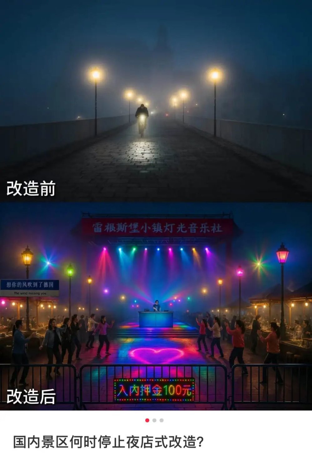 看着这些一到晚上就统统变身的国内景点,“说好听点像夜店,说难听点还以为是‘地府在人间’。”
