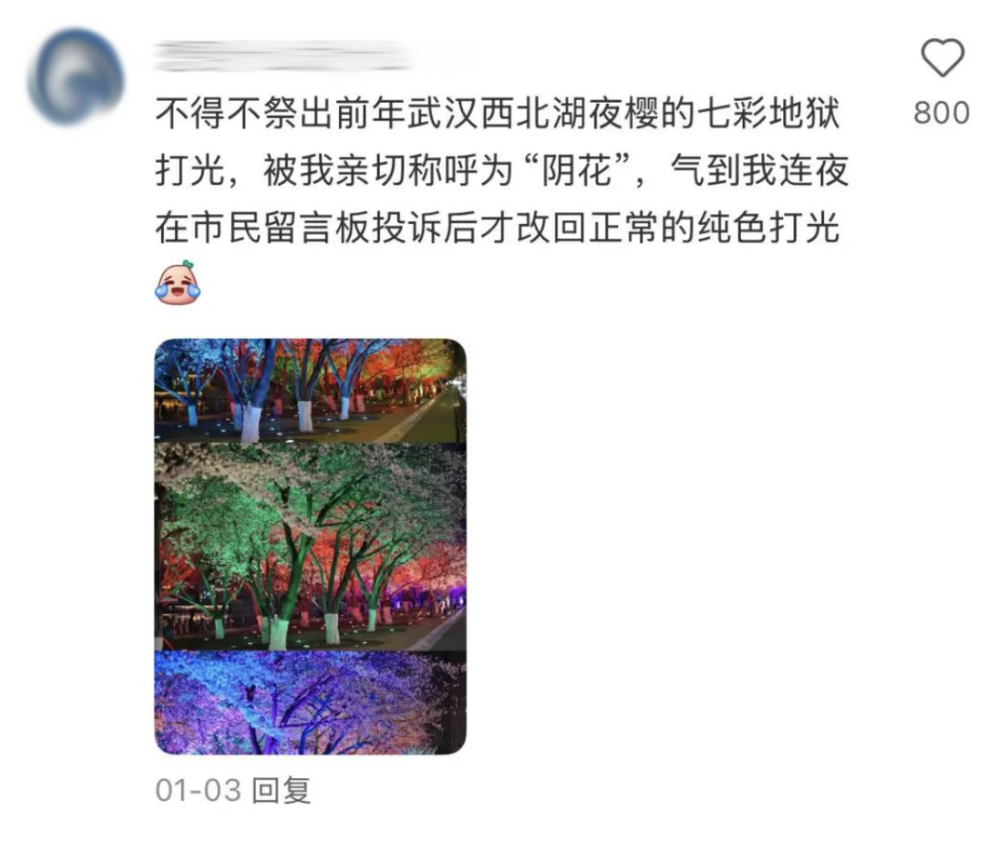 曾在照明公司上班的网友也吐槽,自己辞职是因为“受不了每次做项目,尤其是景区项目,到最后一定要加一个五颜六色的炫彩模式。”