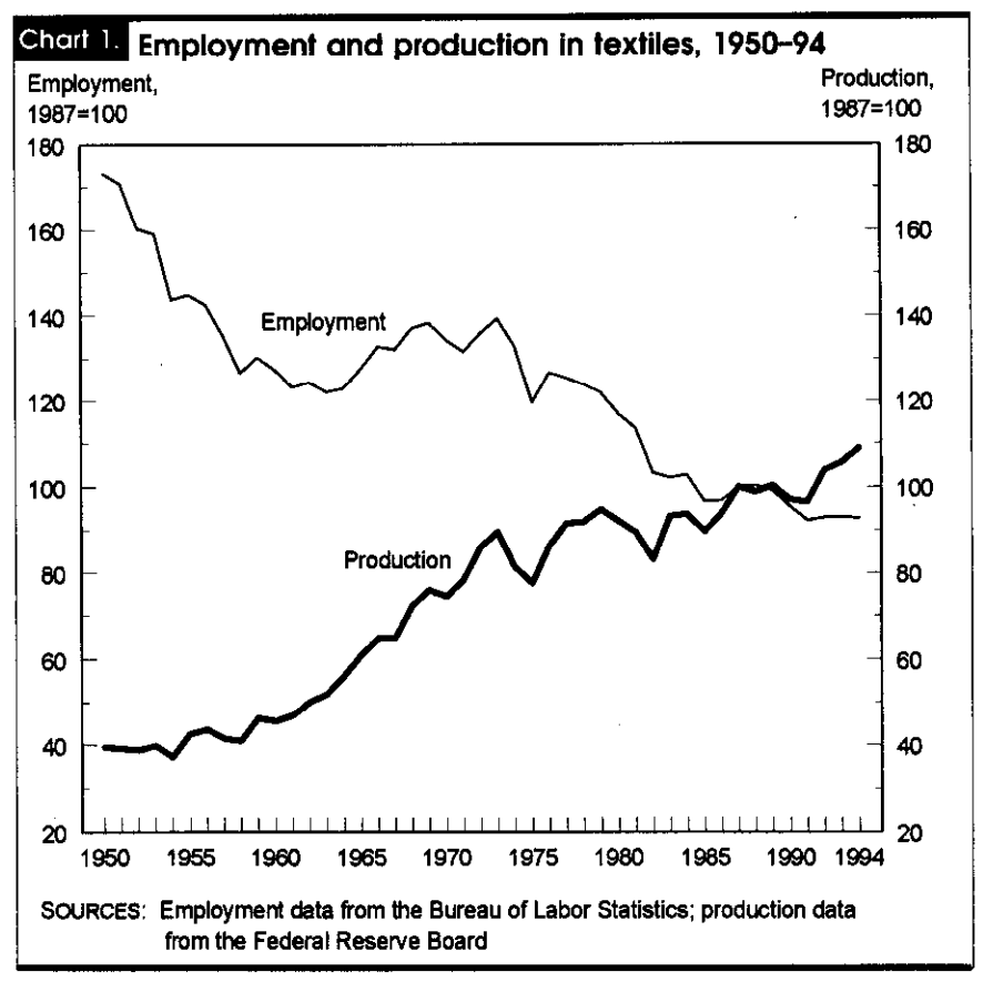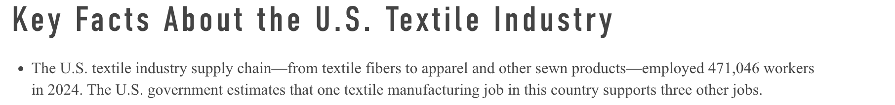 1950年代初期,服装与纺织行业就业人数有210万,在美国制造业中就业排名第3,仅次于机械/金属制造与食品加工。但时至今日,这个数字只有47.1万。