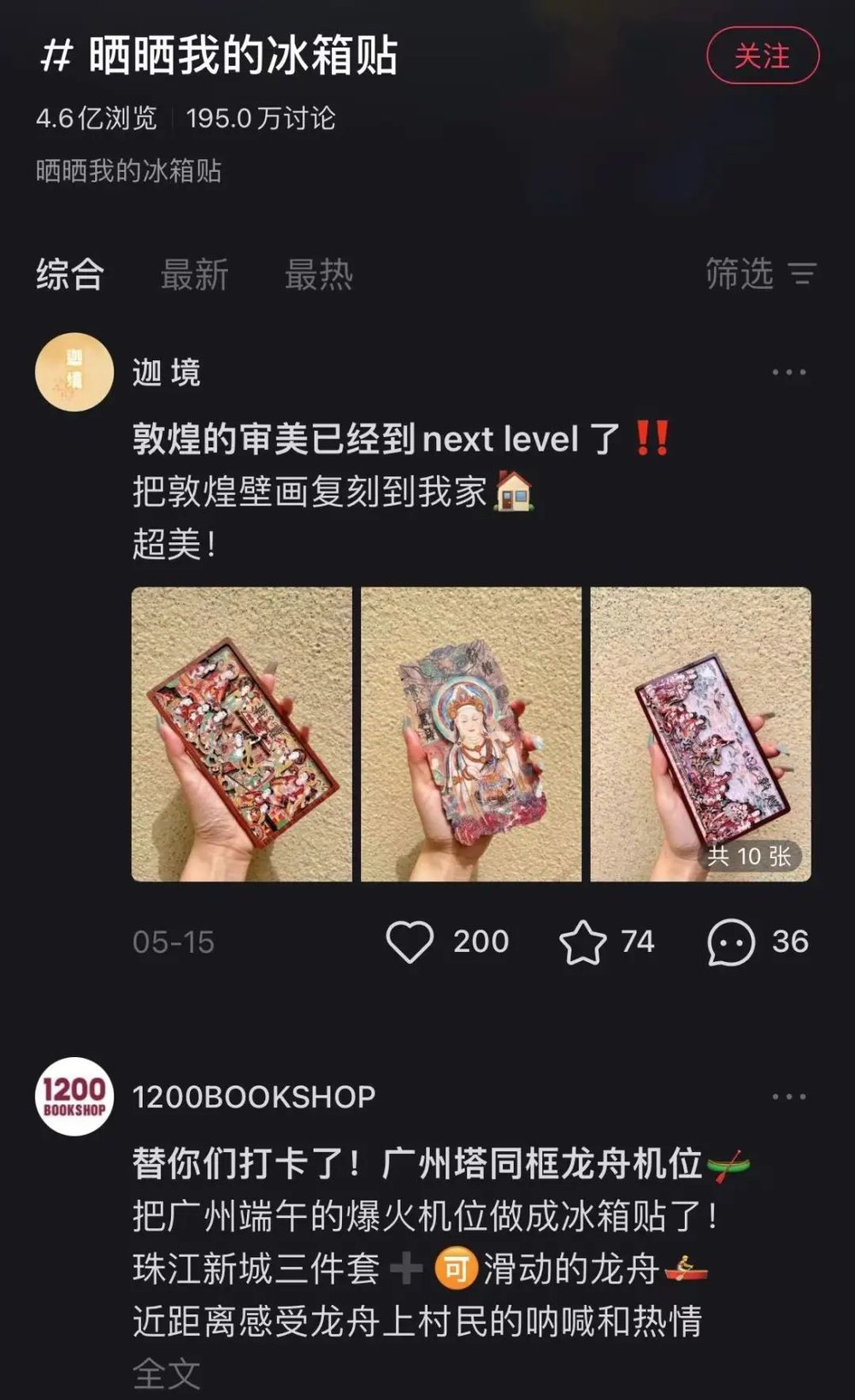 社交平台上,网友们的持续“上新”助力#晒晒我的冰箱贴#话题浏览量突破4.6亿。
