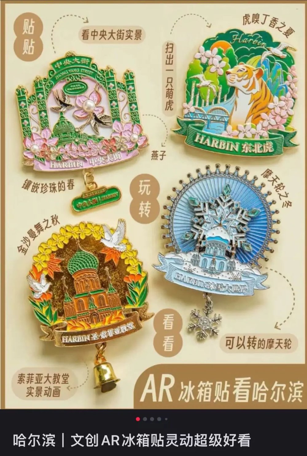 苏州博物馆的“吴门四家”冰箱贴,将沈周的山水、唐寅的仕女转化为可随身携带的艺术小品;哈尔滨的“魔法AR”系列冰箱贴只需打开手机扫一扫,就能生成一个动画,让静态的冰箱贴在手机上动起来。