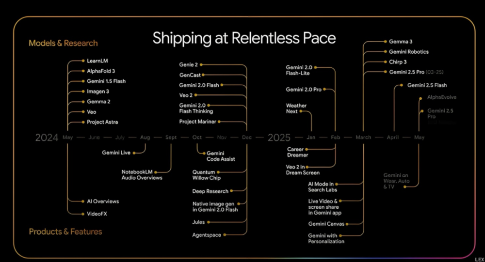 因此,谷歌显然对搜索进行了革命。 Chrome和所有这些都可能是我们的多重对话。Gmail 一直在赞美 Gmail。 地图在彻底改变地图绘制方面具有令人难以置信的技术创新。就像我们谈论的 Android,就像我们谈论的 YouTube。 AdSense Google 翻译对于有学术头脑的 GoogleScholar 来说非常不可思议,因为它可以翻译书籍并扫描书籍。 因此,让全世界的知识都可以被获取,即使是那些知识,也是一种利基事物,Google Scholar就是这样的。 然后显然有了 Deep Mind 的Alpha Zero、Alpha Fold、AlphaEvolve,我可以永远谈论 AlphaEvolve。 这真是令人难以置信。