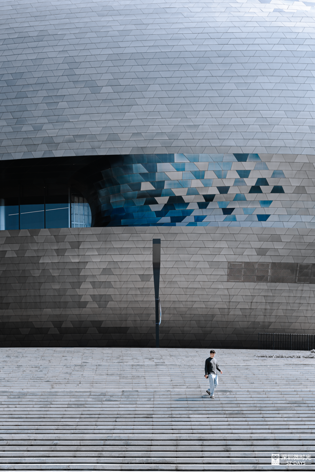 凑近和场馆来一张合影,就会真切感受到其体量之巨大,人在画面中充其量只能是个小小的点缀。