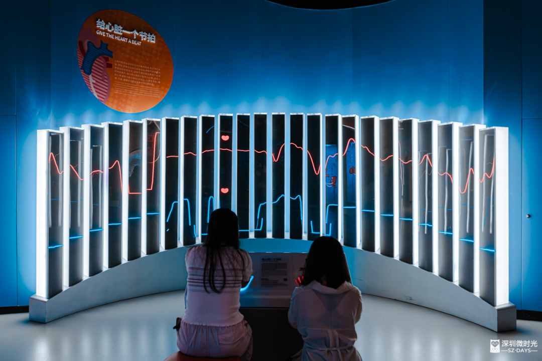 这里的内容贴近日常生活,例如身心奥秘展厅,有模拟动物视野、心跳节拍绘制心电图等互动项目,以此感受人体机能和健康科技的联系。