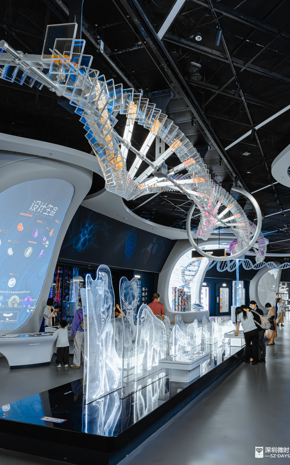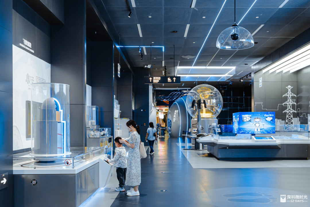 如果说五楼偏理论,那么四楼就是偏技术和应用,而且相当有深圳特色,聚焦深圳“20+8”产业集群,展示高端制造业,新能源、新材料、生物医药等前沿科技成果,同样适合年龄稍大一些的孩子。