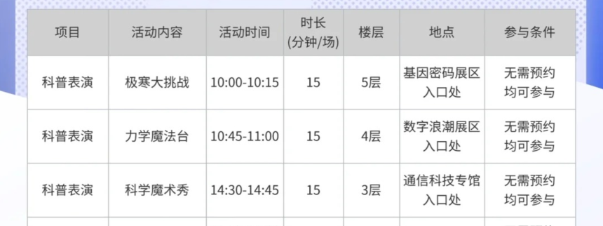 位于1层的活动,无需购买常设展厅门票即可参与,但需在深圳科学技术馆的官方小程序预约。位于2层—5层的活动,则需要购买常设展厅门票进场。