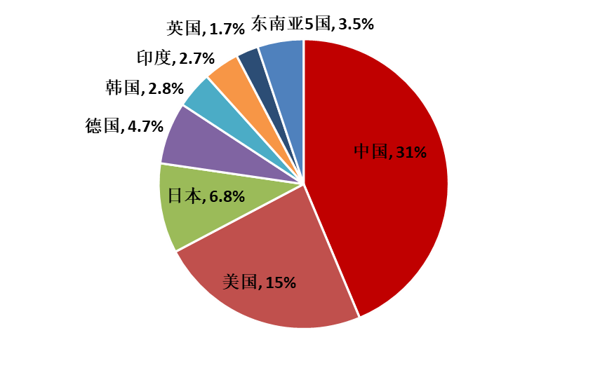 主要国家制造业增加值占全球的比重,来源:Wind,中泰证券研究所