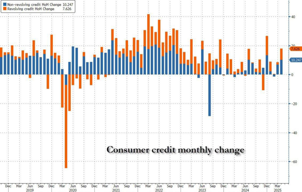 美联储G98报告显示,4月消费信贷增长从修正后的86亿美元激增至179亿美元,增幅超过一倍,创下2025年最大单月增幅,同时也是自2023年11月以来第二高的月度增长。