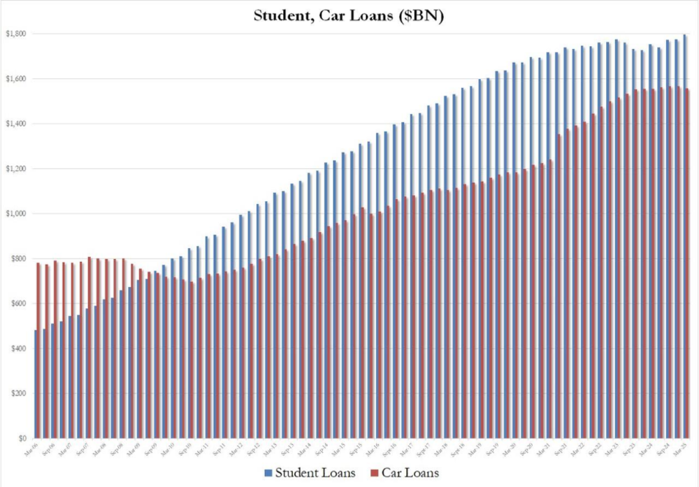总的来说,当数百万前“学生”即将开始大规模违约之际,学生贷款却再次成为推动消费支出的主力,这一现象值得密切关注。这种债务驱动的消费模式能否持续,以及何时会迎来清算时刻,或将成为决定美国经济走向的关键变量。