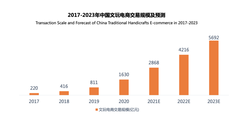 如今,这种热闹被搬到了线上。近日,艾媒咨询发布《2021年中国文玩电商行业发展研究报告 》(以下简称《报告》)称,在疫情影响下,直播模式为文玩电商带来了新的风口,其用户规模呈现跨越式增长,预计2023年用户规模将破亿。报告还预测,2020年中国文玩电商市场交易规模为1630亿元,2022年将超过4000亿元。