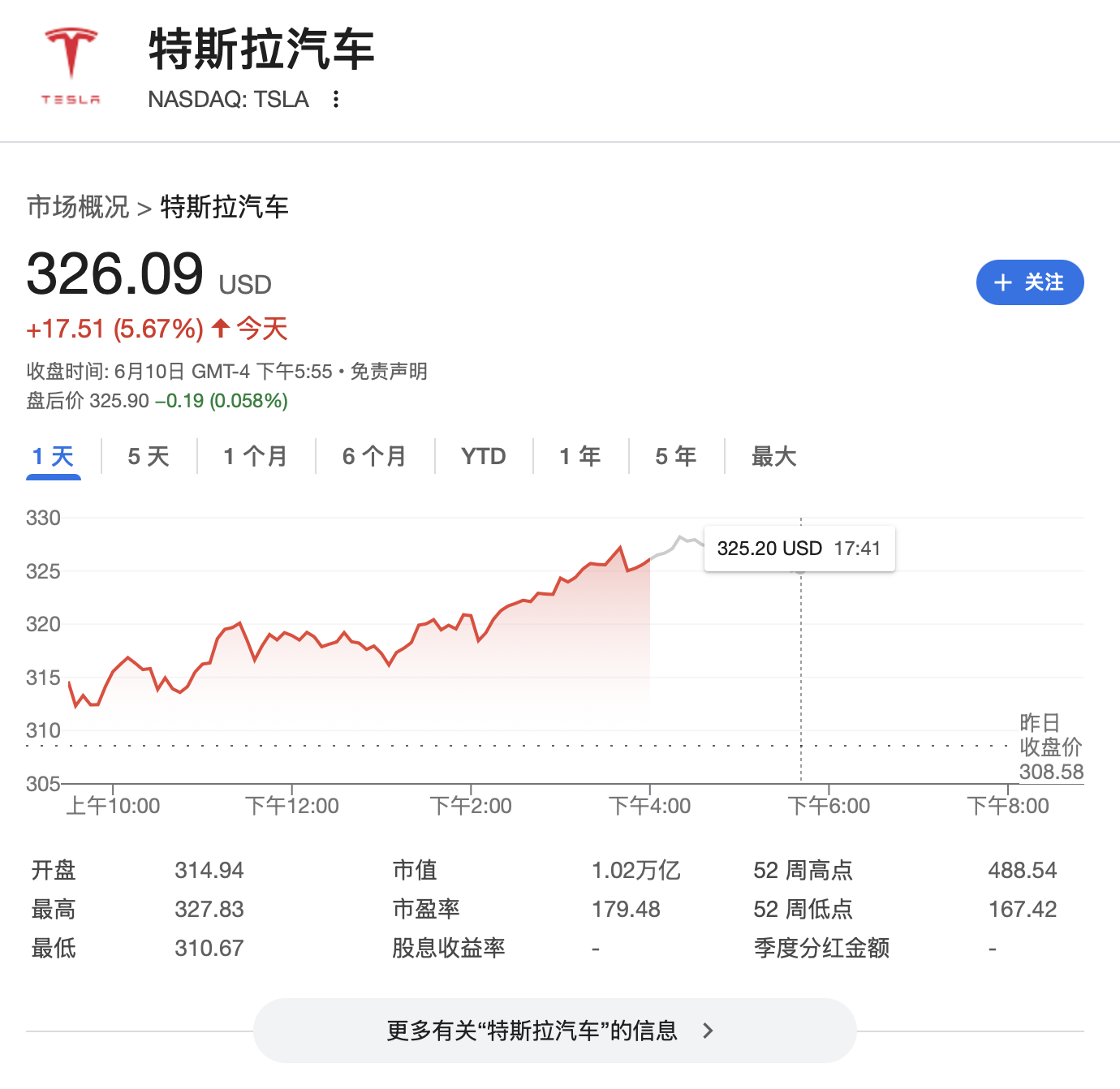 周一盘前,特斯拉股价一度下跌4%,但随后回升,收盘上涨4.6%。周二,特斯拉股价收涨5.67%。从上周四暴跌后,特斯拉股价已经上涨14.5%,基本收复了马斯克与特朗普撕逼造成的跌幅。