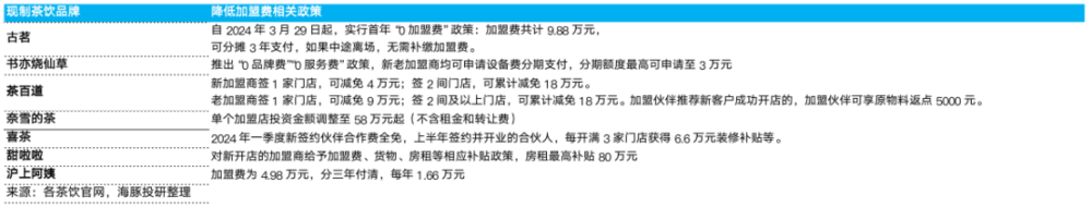 奈雪的茶将98万的单店投资门槛直接砍到58万,古茗、书亦烧仙草、沪上阿姨纷纷采用加盟费分期支付。