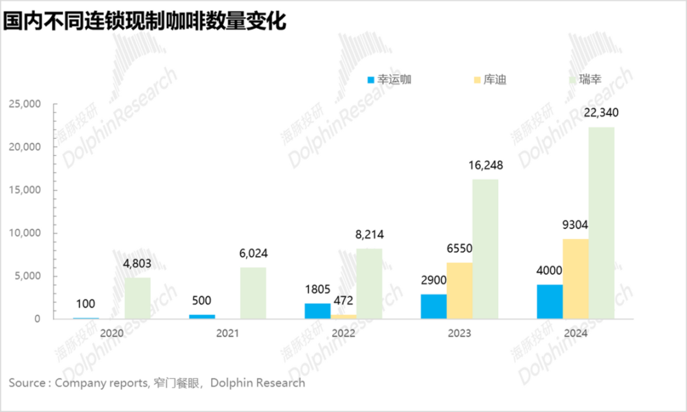 而在连锁现制咖啡品牌中,虽然幸运咖的门店数量仅次于瑞幸、库迪、星巴克,位列第四,但与同样注重下沉市场、且2022年才开始起步的库迪相比拓张速度也明显落后。