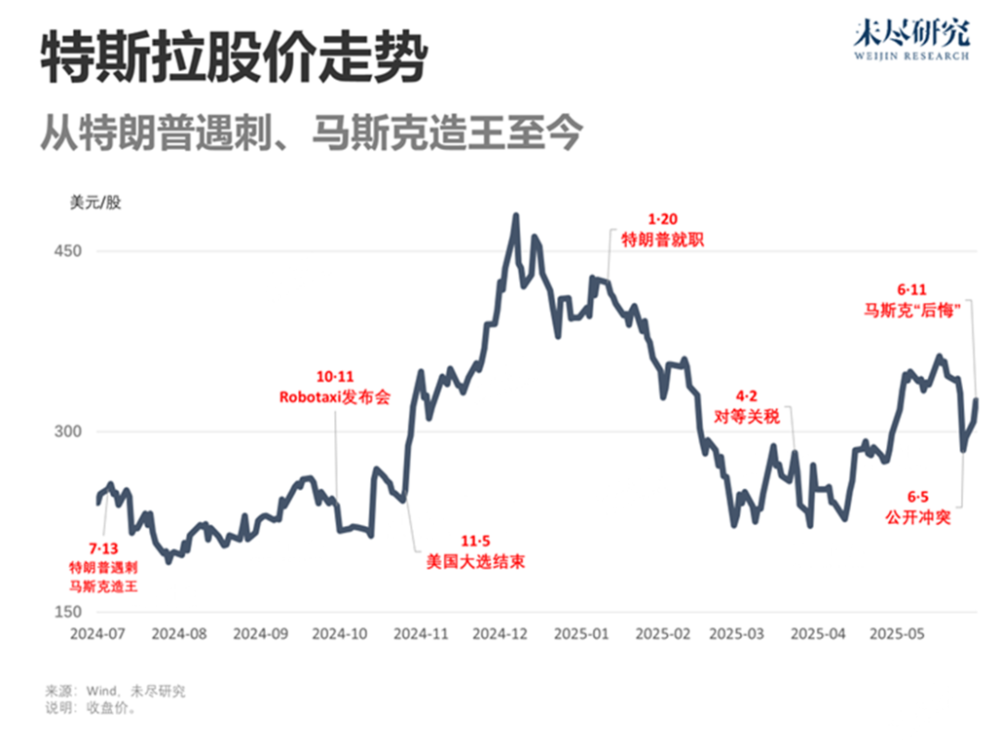 马斯克需要守住他的商业帝国。他宣布,暂定在6月22日于奥斯汀上线Robotaxi服务。特斯拉的股价继续反弹,回归万亿美元市值。从特朗普遇刺、马斯克造王至今,差不多一年的时间里,特斯拉的市场表现,始终和政治与技术的叙事缠绕在一起。