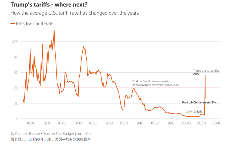 首先之前大家觉得会有通胀的走高,也是算数算出来的,美国2024年总进口差不多三万亿,然后在中美和缓之后,总的关税水平从之前接近30%下降到15%左右。