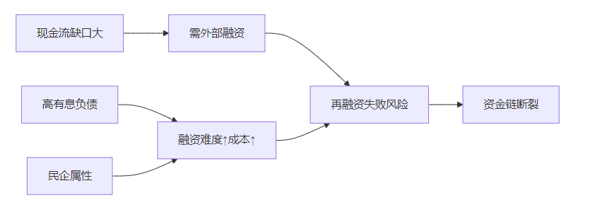 ②有息负债占总资产的比重已然很高,再融资(无论是发股还是发债)非常困难,融资成本更高;