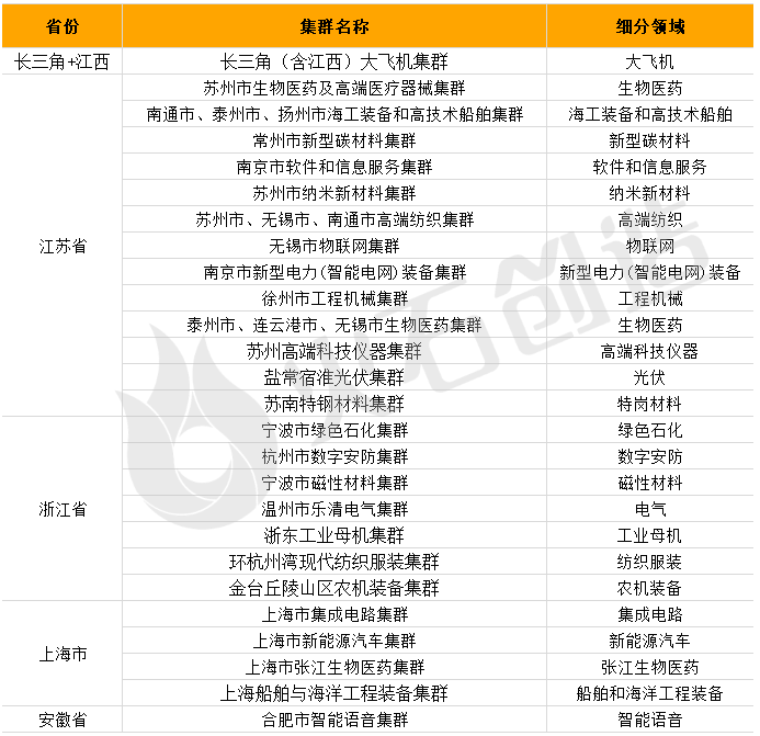 江苏独立建设13个国家级先进制造业集群,浙江、上海分别独立建设7个、4个,而安徽单独建设1个,长三角+江西合力建设1个。