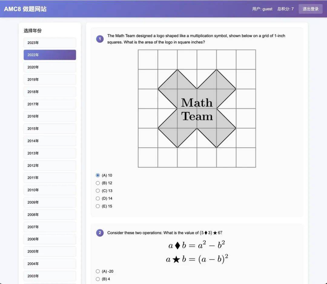 我们的一位研发同事,就在用 TRAE 教他们家 11 岁的小朋友学习编程。这是小朋友最近完成的一个奥数竞赛题库网站:一个真实的网站,可以用来练习小学的奥数题。