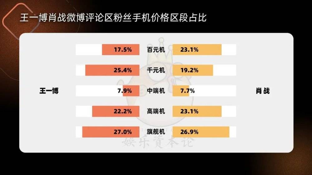 比如在价格最高的旗舰机和高端机部分,肖战和王一博这两位娱乐圈顶流,粉丝手机消费力情况也是相当“顶”,旗舰机和高端机相加的占比在50.0%和49.2%,均达到近半水平,在诸位娱乐圈人士中一骑绝尘。