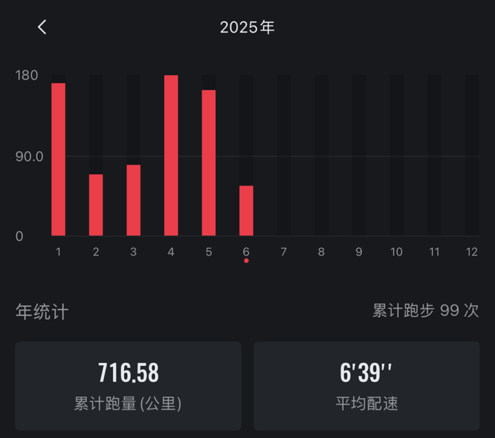 下图是我的跑步数据,去年跑了一千二,今年坚持低心率慢跑,二三月份事情太多,又中了一次流感,跑量较少,其他几个月还凑合,基本上能做到隔天跑个八公里。