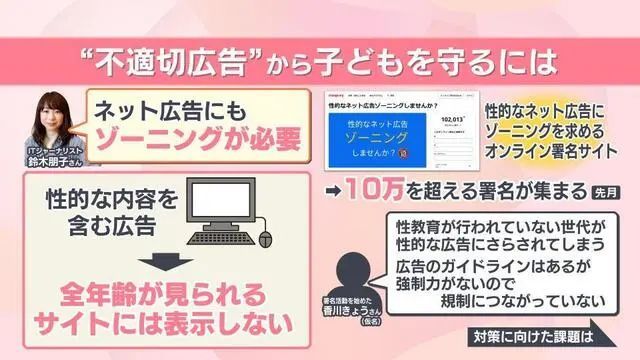 这场运动的发起人香川京(化名)就是一位深受其扰的妈妈。她家有三个学龄儿童,正是在有次孩子在查游戏攻略时,屏幕上赫然出现了色情广告。她回忆说:“我完全没想到这种网站也会有这种广告,感觉孩子一直在看这些东西,我都后悔没早点管。”这种经历恐怕很多家长都有共鸣。你装了广告拦截器,以为万无一失,结果某些广告还是能“见缝插针”,让人防不胜防。