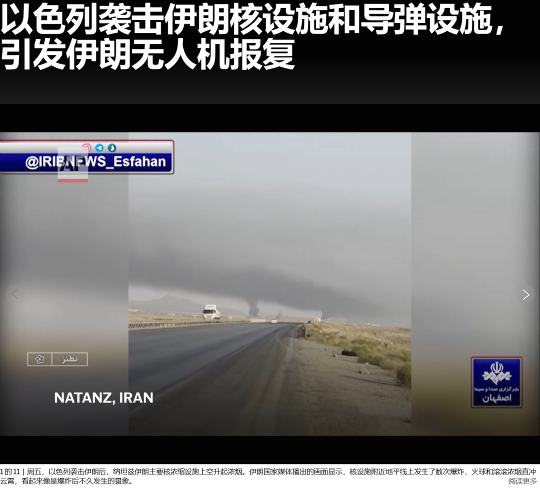 至于伊朗最宝贝的核设施,以色列军方发言人称,以军已对伊朗纳坦兹设施造成重大破坏。