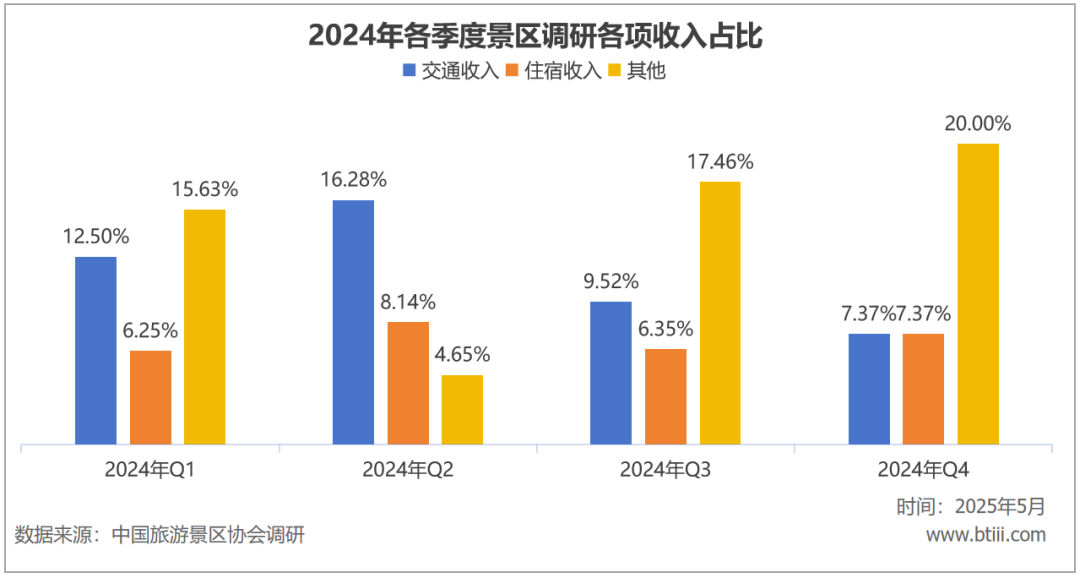 《报告》显示,2024年各季度,以上三项收入在调研样本景区总营收中的总占比30%左右。