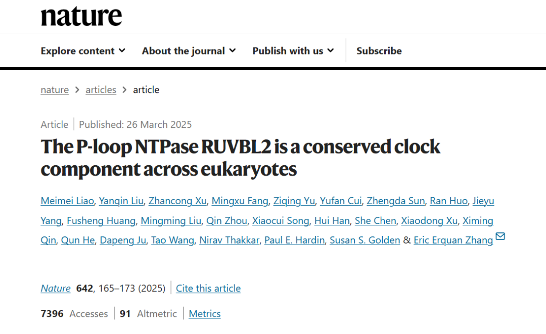 北京生命科学研究所高级研究员张二荃研究团队在《自然》杂志上揭示了一种名为RUVBL2的P-环NTP酶在生物钟调控中的核心作用(《The P-loop NTPase RUVBL2 is a conserved clock component across eukaryotes》)。这种 “异常缓慢”的ATP水解酶,每天仅处理约13个ATP分子。