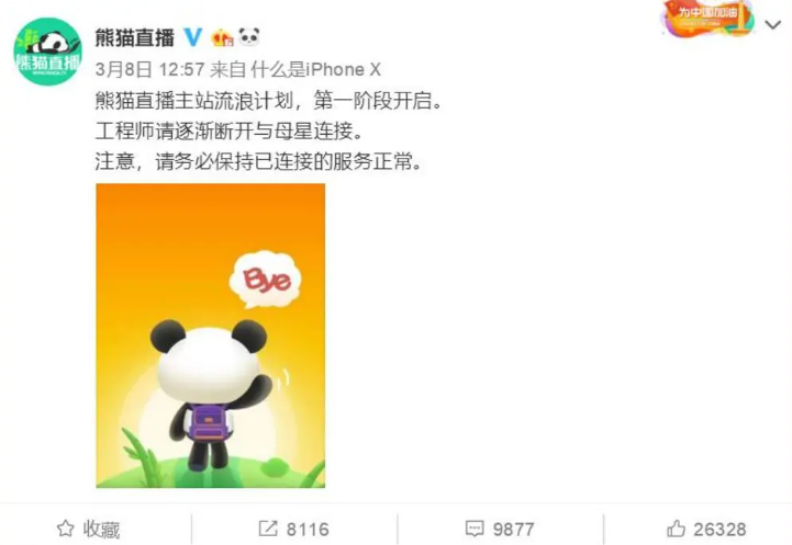 先是小平台开始陆续倒闭,接着中腰部也扛不住了,即便是曾风光无限的熊猫直播,也在2019年宣告退场: