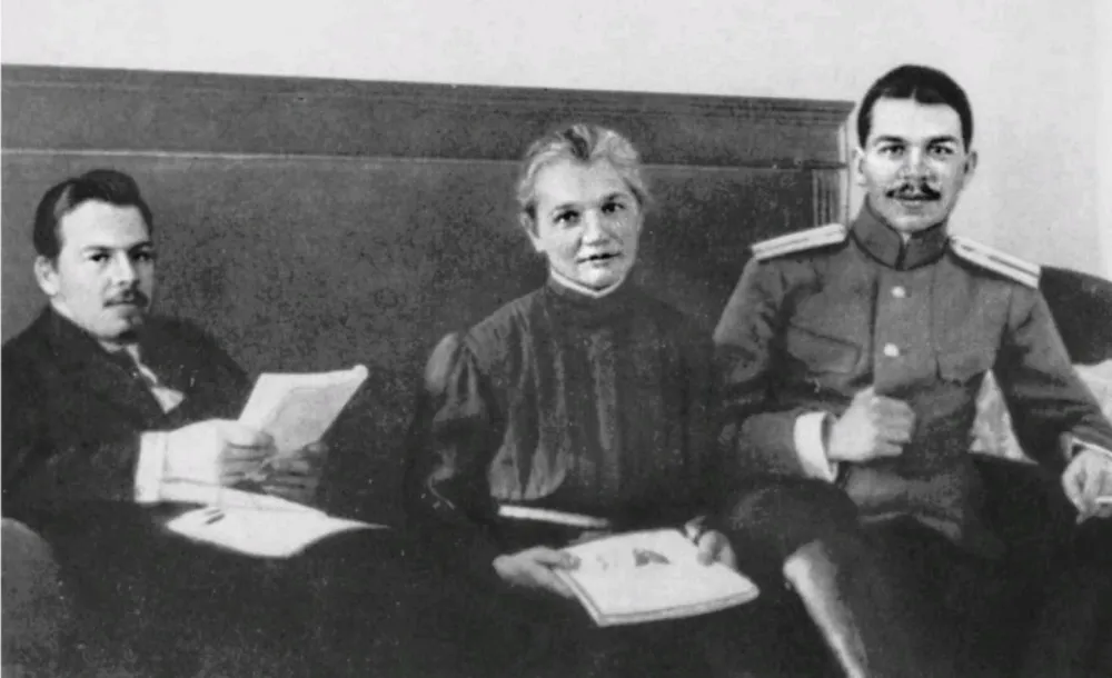 图说:谢尔盖从前线回到莫斯科探望家人,中间为母亲,母亲右手边为兄长尼古拉,照片摄于1916年12月25日|图源:见参考资料[5]