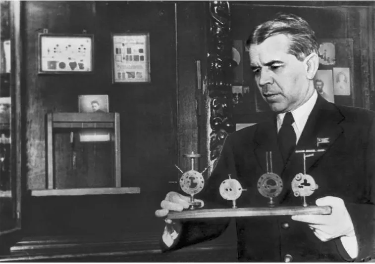 图说:谢尔盖·瓦维洛夫(Sergey Vavilov)在办公室,他手上拿的是列别捷夫(Pyotr Lebedev,1866—1912)的实验仪器。他领导的科学院物理研究所也叫做列别捷夫物理研究所。1899年,列别捷夫首次在固体上量测到辐射压,是享誉国际的物理学家。丨图片来源:https://cerncourier.com/