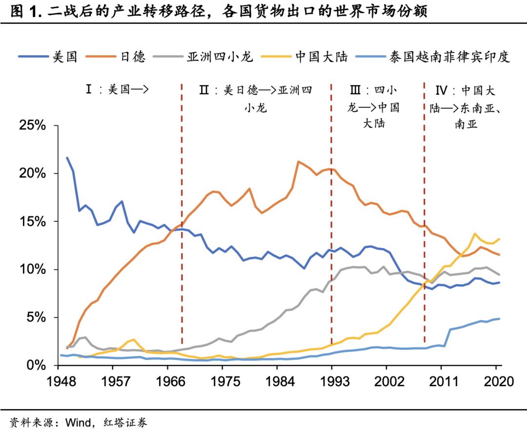 上世纪八九十年代从日本、亚洲“四小龙”向我国内地的转移如此,如今从中国向越南及东南亚国家的转移也是如此。