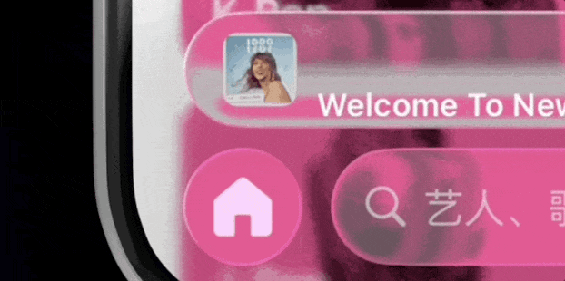 类似的设计还有很多。苹果在 iOS26 中把大量方块、长条、banner都变成了一块块以假乱真的玻璃,无论是视觉还是动效,都和你往手机屏幕上放一块玻璃是一样的。