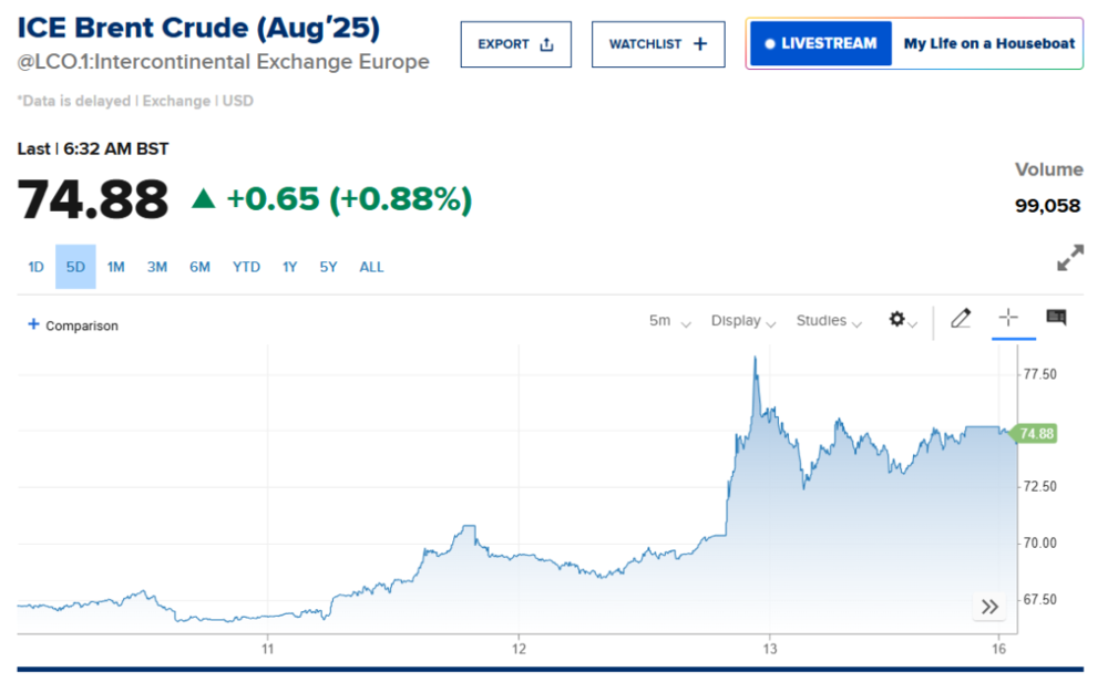 一时间,“中东火药桶”被彻底点燃,全球能源供应链的神经瞬间绷紧,布伦特原油期货与美国WTI原油期货上周双双录得超过10%的惊人涨幅。周一亚洲早盘,涨势延续,国内原油期货大涨近6%,价格创近两个月新高。