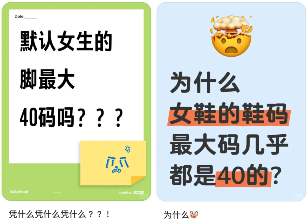 在国内社媒平台,率先发出“无鞋可穿”呼声的是鞋码超过40的大码女性消费者。她们指出,女款运动鞋的最大码往往止步于40码且长期缺货,“想买大码只能被迫选择男款”。