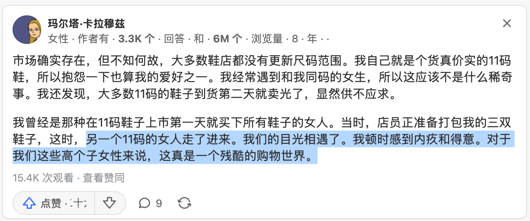 在精练GymSquare一篇关于女性运动服尺码的文章中,读者留下的这条评论得到不少人点赞,揭开了女性难买运动鞋的现实一角。